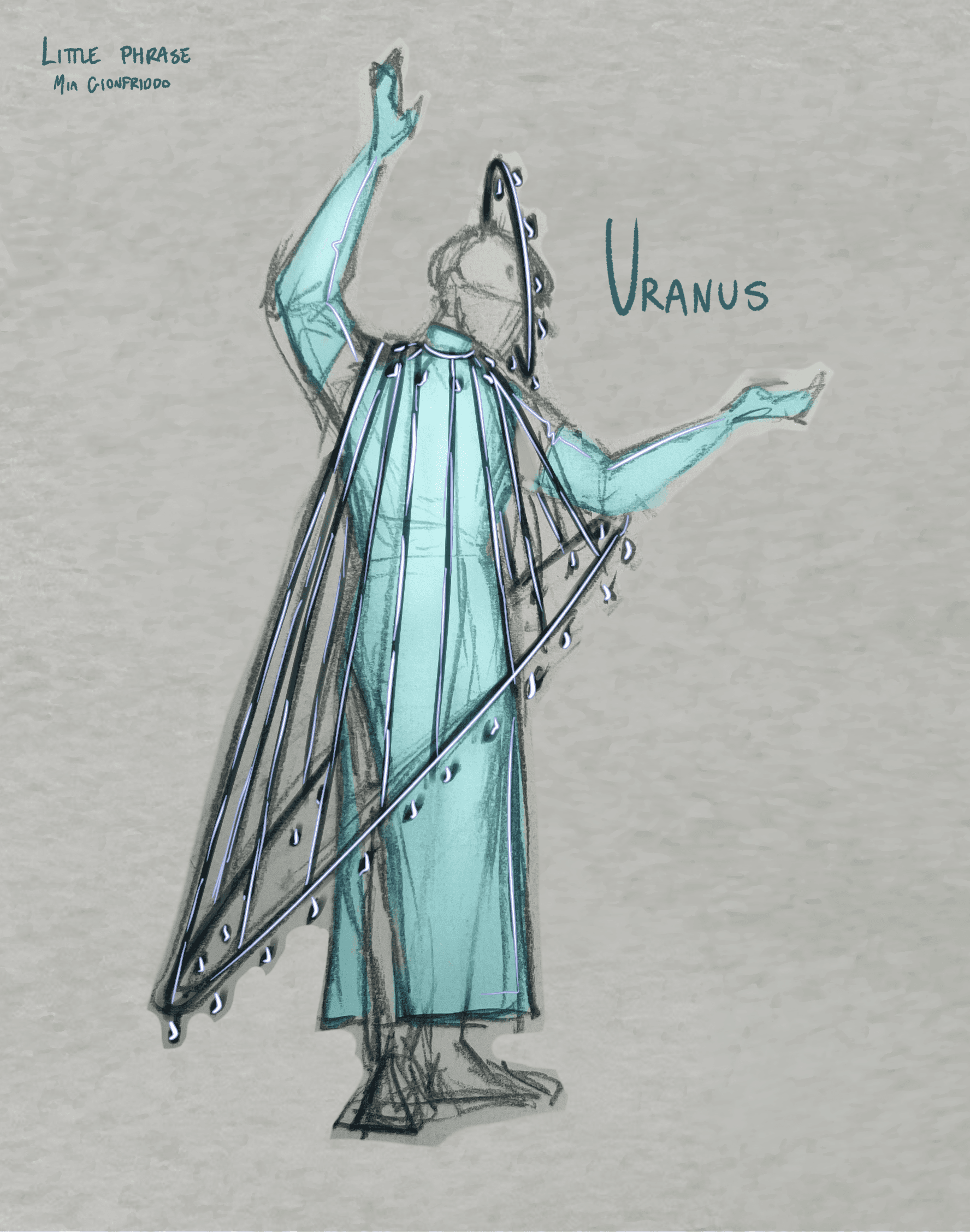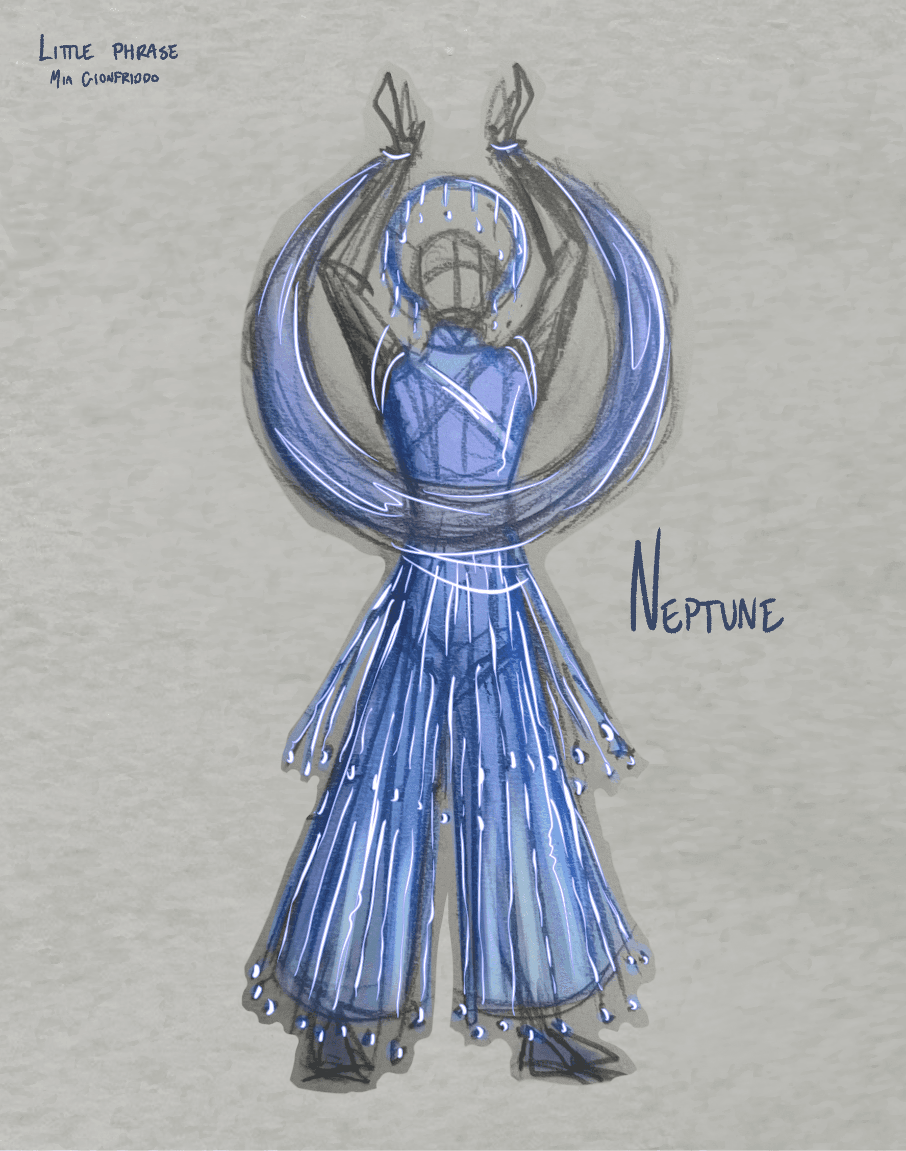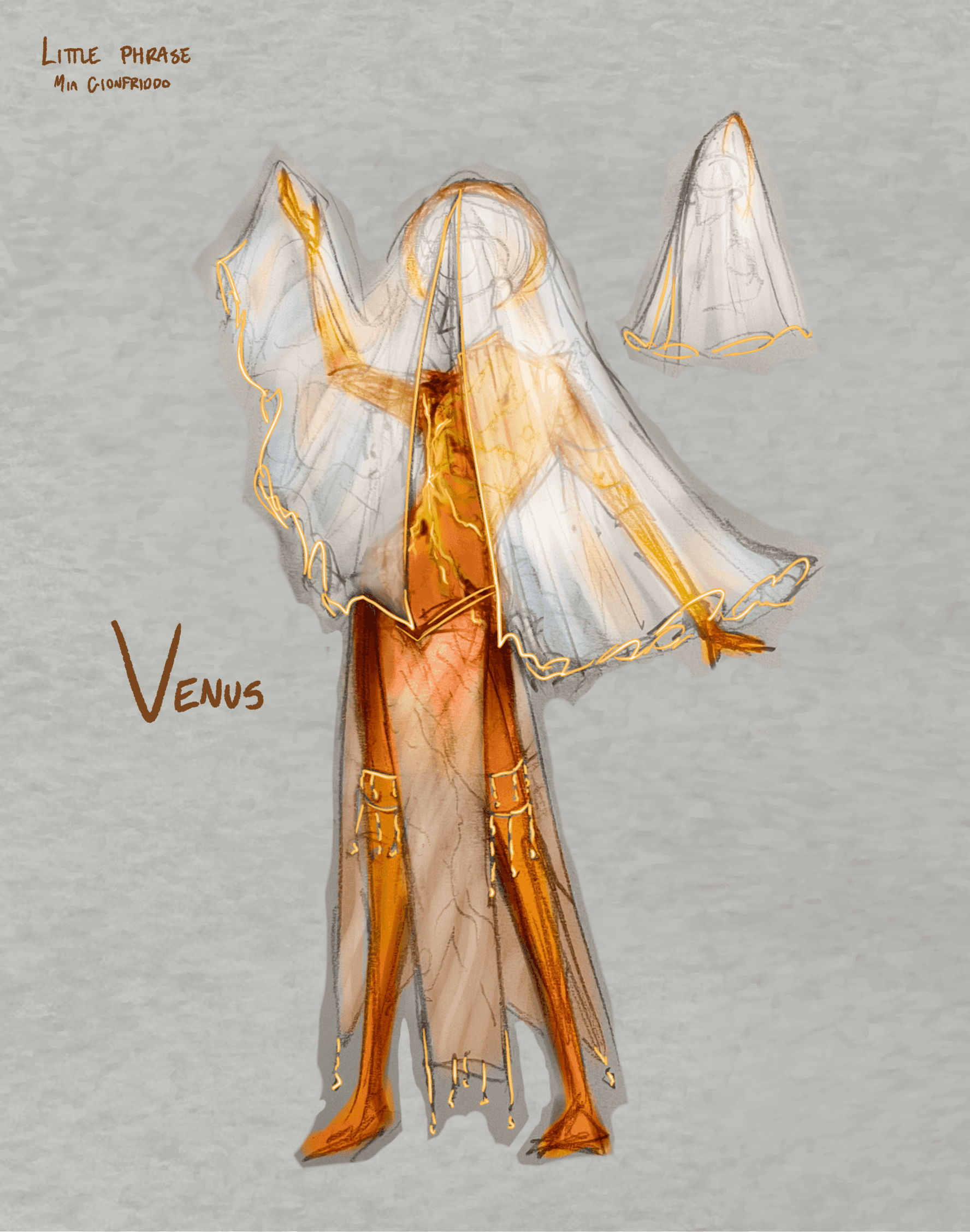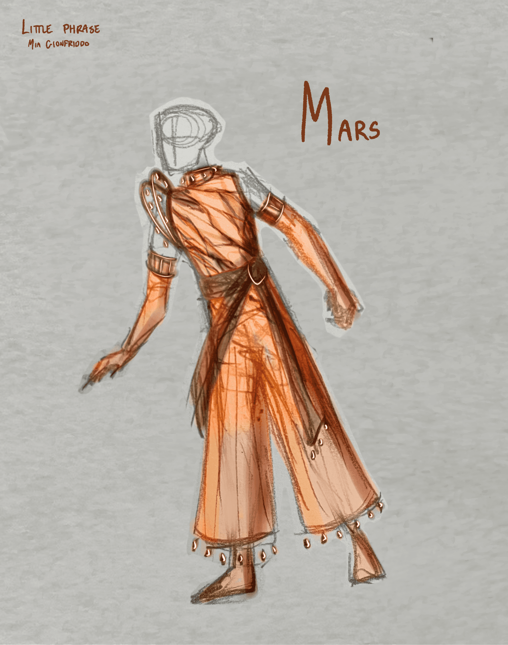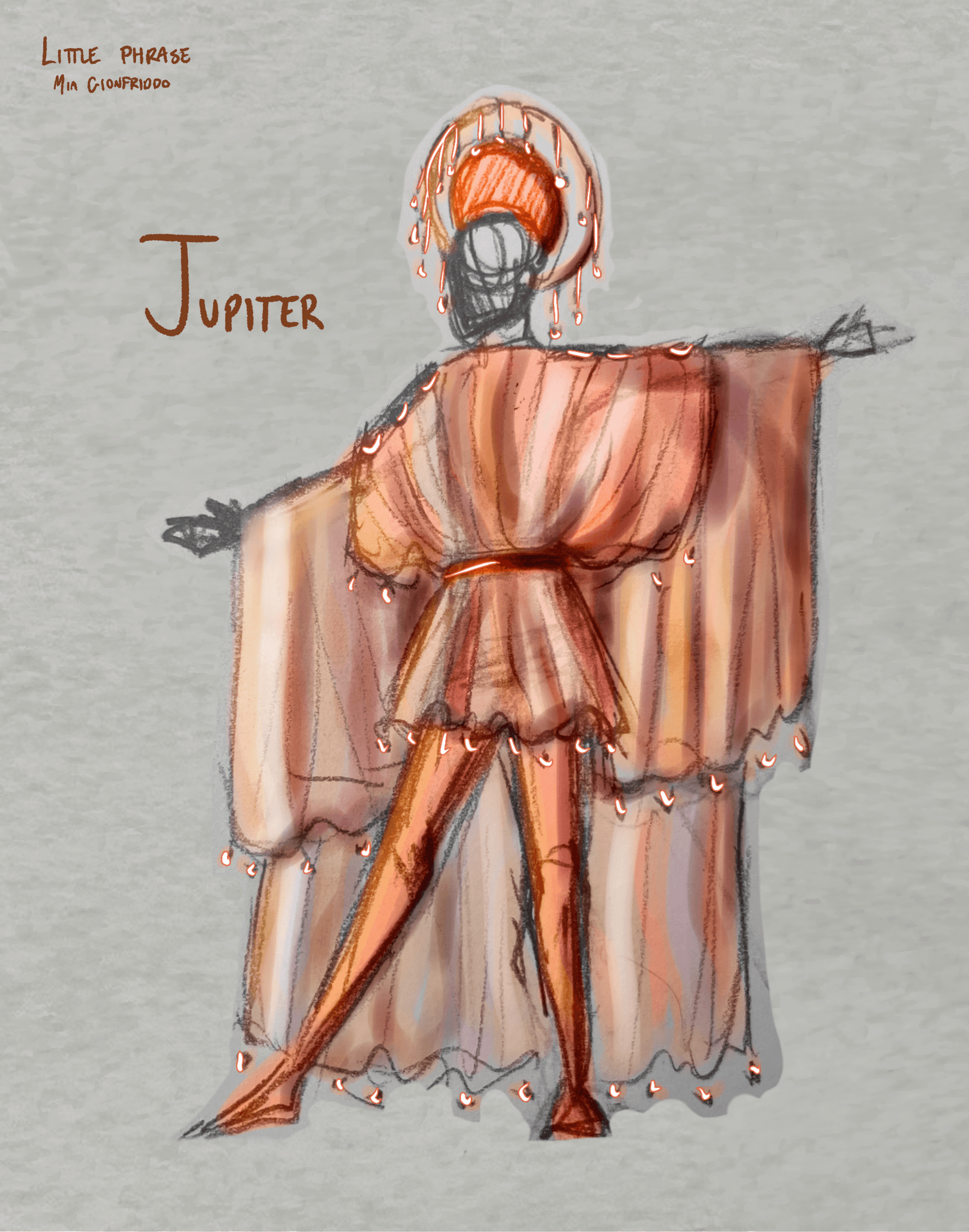 A theoretical design assessment done for Production Studio 3. Costumes designed for the dance piece 'Little Phrase', by Rheannan Port. Selected costume renders shown.